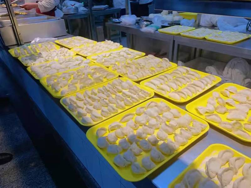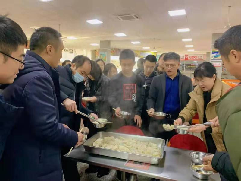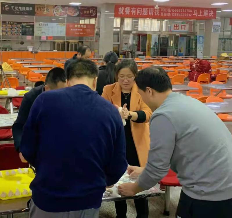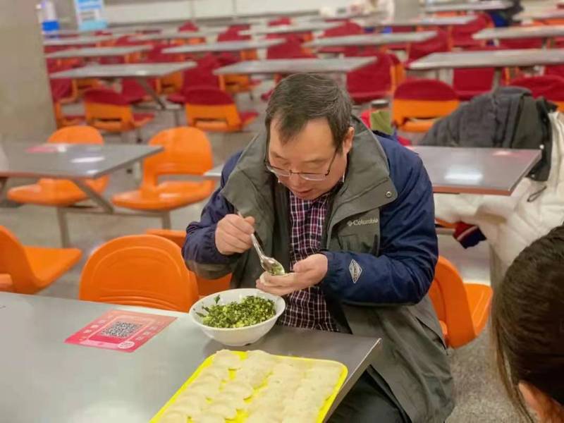 常规活动结束以后,大家转场来到在第三餐厅继续开展包水饺活动。应学院邀请,研究生工作部的领导同事们也来到三餐与大家一块包水饺提前庆祝新春佳节到来。大家摩拳擦掌,跃跃欲试,纷纷拿出自家包水饺的看家本领,相互切磋,配合融洽。学院小朋友们也在长辈们的带领下投入到热火朝天的劳动中,为美味的午餐贡献上自己的一份力量。经过大家一个多小时的辛勤努力,热腾腾的水饺一勺接一勺的出锅了,在其乐融融的氛围中大家品尝着美味的水饺。