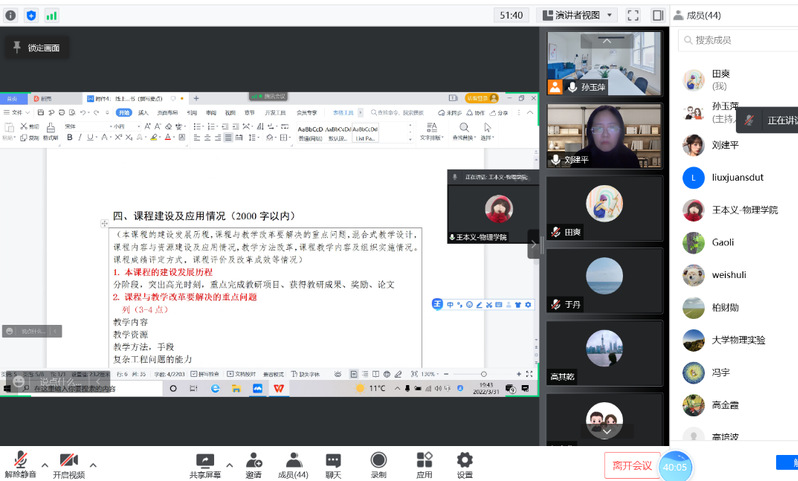 为加强我院一流本科课程建设,继续深化课程建设改革,3月31日晚上学院邀请我校教学名师、国家一流本科课程负责人刘建平教授作了题为“一流本科课程建设与申报体会”的线上报告。学院班子成员、各系室主任、培育课程团队教师及部分骨干教师聆听了报告会,会议由教学院长孙玉萍主持。