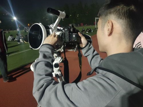 4月16日晚,我院天文爱好者协会天文观测活动在第四体育场顺利举行,活动由会长王扬、会长助理郭润、流星陨石部部长刘建芬主持,社团会员及天文爱好者参加。