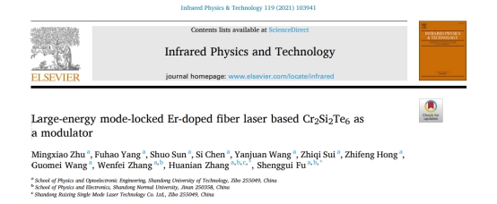 我院智能光子学团队研究生朱明晓以首位作者在学术期刊《Infrared Physics and Technology》上发表题为“Large-energy mode-locked Er-doped fiber laser based Cr2Si2Te6 as a modulator”的研究论文,介绍了该团队在大脉冲能量超快光纤激光器研究领域的新进展,通讯作者为为张华年副教授和付圣贵教授。