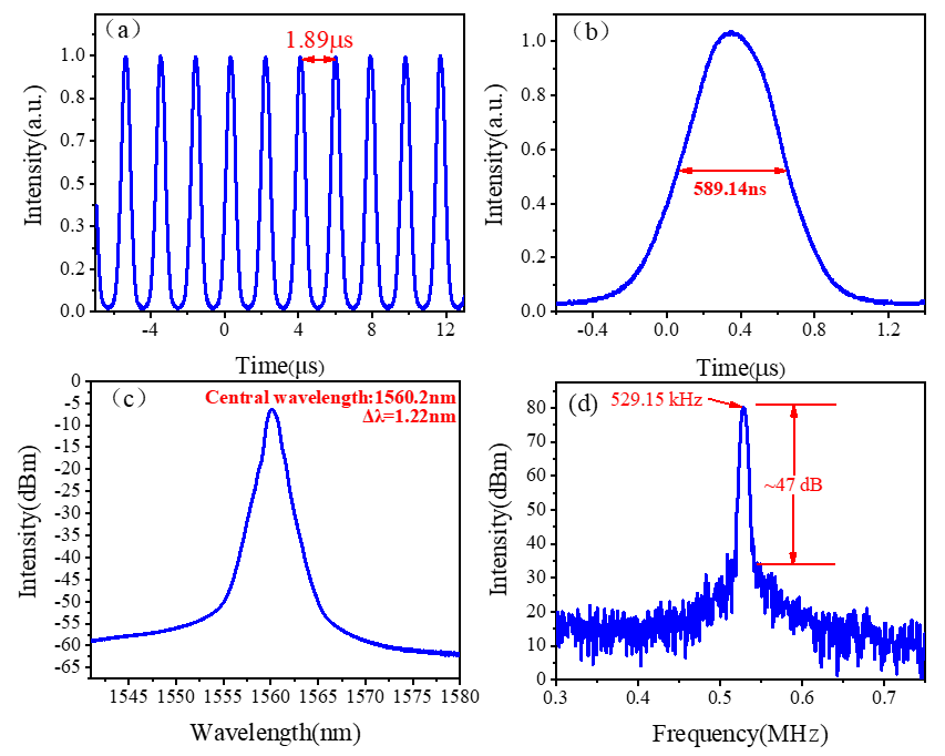 我校William威廉英国刘晓娟副教授指导研究生洪之峰、蒋习雯、张美霞等人制备了Cr2Si2Te6纳米片,并将其用作高功率、大脉冲能量锁模掺铒光纤(EDF)激光器中的可饱和吸收体(SA)。在总腔长为240 m的情况下,实现了最大脉冲能量高达244.76 nJ、重复频率为847.64 kHz的稳定锁模工作。经过对光纤激光器环形腔的计算与优化,在适度牺牲平均输出功率的前提下,通过降低光纤激光器输出锁模脉冲频率的办法,实现了提升单脉冲能量的设计初衷。理论与实验完全吻合。当腔长最终被延伸至390 m时,实验所能获得的最大脉冲能量相应地被成功提升至325.50 nJ。据我们所知,这是迄今为止通过二维(2D)材料可饱和吸收体(SA)在锁模光纤激光器中实现的最大脉冲能量。这项工作一方面为锁模光纤激光器产生大脉冲能量的研究向前迈进了一步,另一方面,充分证明了铁磁绝缘体Cr2Si2Te6具有优良的非线性可饱和吸收性能、在开放环境中的抗氧化性能以及优异的热稳定性。丰富了对二维材料的研究与认识。