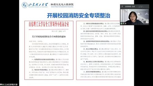 会议共分两项议程。第一项,党委书记王冰传达了学校下发的《关于开展校园消防安全专项整治的通知》。她强调,校园消防安全专项整治要结合学院实际情况,坚持以问题隐患为导向,认真贯彻落实好学校有关要求,进一步推动校园消防安全走深走实。接下来学院将紧紧围绕校园建筑自动消防设施、电动自行车、消防安全疏散通道、违规存放易燃易爆危险品、违规使用易燃可燃材料装修、防火分隔、重点岗位人员责任落实、规范日常管理机制和常态化宣传教育培训等九个方面的内容进行全面自查,开展专项治理。第二项,组织全体教职工观看消防安全警示教育片,该片通过安全事故回放、专家点评等形式,深入剖析了近年来发生的重大安全事故案例,以触目惊心的画面和震撼人心的事实,唤醒大家的安全意识,具有很强的震撼力和说服力。影片中重点讲解了当遇到不同火灾事故时,应如何进行人员疏散、自救、逃生等消防知识技能,教育并警示人们火灾事故的严重危害性,提醒大家要时刻关注消防安全。