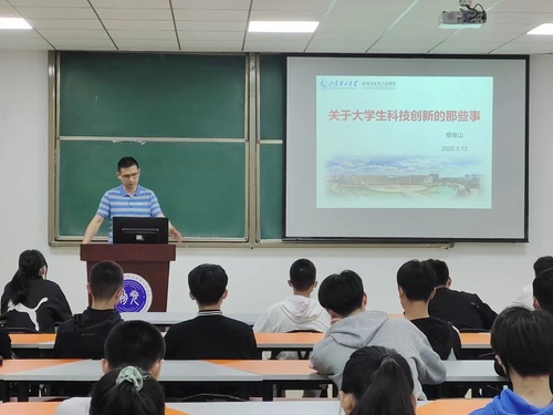 修俊山以《关于大学生科技创新那些事》为题展开,首先介绍了学生参加创新创业竞赛的重要性,他表示,优秀的学生不仅要有漂亮的成绩单,获奖证书在求职面试中也有至关重要的作用。他讲到,大学四年的时间要怎样度过完全取决于自己的态度,大二到大三是参加创新创业大赛的黄金时间,也是获得证书的最佳时期,在学习生活中也要多与任课老师交流关于创新创业项目的相关问题。