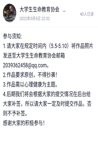 为缓解学生的心理压力,让学生们找回自己的心灵乐园,5月5日至5月11日期间,我院举办“心灵乐园”心理主题手抄报活动。本次活动由大学生生命教育协会承办,采用线上线下相结合的活动方式开展。