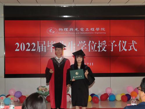 讲话结束后,院长付圣贵依次为每一位毕业生拨穗、颁发学位证书,并一一合影留念。