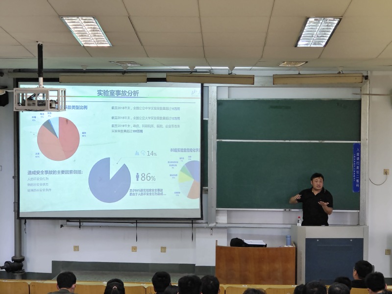 会议伊始,于方永从案例事故简析、危险化学品分类和特种设备管理、危险化学品和废弃物的管理、实验室应急处置等四个方面对实验室安全进行了专题培训讲解。于老师结合典型的实验室安全事故案例分析,讲解了实验室安全培训和实验室准入制度执行的必要性;针对常见的环境、气体、油品、废液储存等实验室安全管理问题进行了列举剖析;结合实验室中潜在的起火、触电、中毒、药品溢泼、化学品泄漏等安全危害对安全危害的应急处置进行了全面讲解。于老师指出安全无小事,应定期开展实验室安全检查,确保安全隐患问题能及时发现、及时整改,切实保障实验室的安全“底线”。