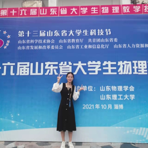 获奖:大学生创新创业训练省级,山东省大学生物理竞赛一等奖,山东省光电设计大赛一等奖,山东省物理教学技能大赛二等奖,山东省数学竞赛三等奖,全国大学生英语竞赛三等奖,山东省大学生职业生涯规划大赛邀请赛三等奖,优秀学生,优秀班干部,优秀共青团员。