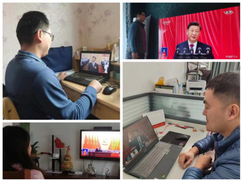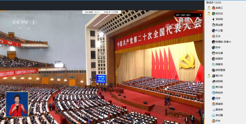 部分师生党员在15号教学楼335教室集中收看,广大师生通过电视、网络以及新媒体等形式,即时收听收看开幕盛况。