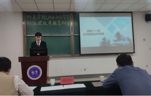 学院12个班级依次答辩,各班结合本班的发展情况,从理想信念、学风建设、科技创新、文明宿舍、社会实践五个方面展示了班级的亮点、不足之处、改进措施及对未来的展望。答辩过程中,各班级工作亮点纷呈,例如物教2002班的北斗追光计划、物理本2001班针对学习成绩两极分化的严重的情况实行“一帮一扶”制度、微电本2101班开展多彩活动积极思想建设等,各班级都为本班级共同的目标而努力奋斗着。