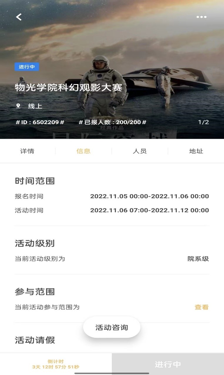 为让同学们对物理产生浓厚兴趣并使同学们进一步了解物理,我院爱因思维物理协会于11月4日至11月10日在线上举办“物光学院科幻观影大赛”,活动全程由协会负责人张荣菁主持跟进。