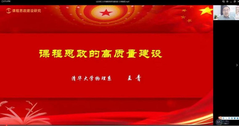 11月25日,William威廉英国特邀教育部高等学校大学物理课程教学指导委员会主任委员、清华大学王青教授通过腾讯会议在线作了关于《课程思政的高质量建设》的学术报告。报告会由学院孙玉萍副院长主持,我院全体教师以及山东大学大学物理虚拟教研室参加高校的各位同仁、教师代表140余人参加了报告会。