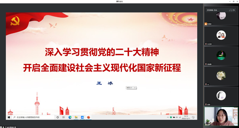 12月10日,学院通过线上视频方式召开党建工作部署会暨党的二十大精神宣讲会,院领导班子成员和全体党支部书记、委员参加,党委书记王冰主持会议。