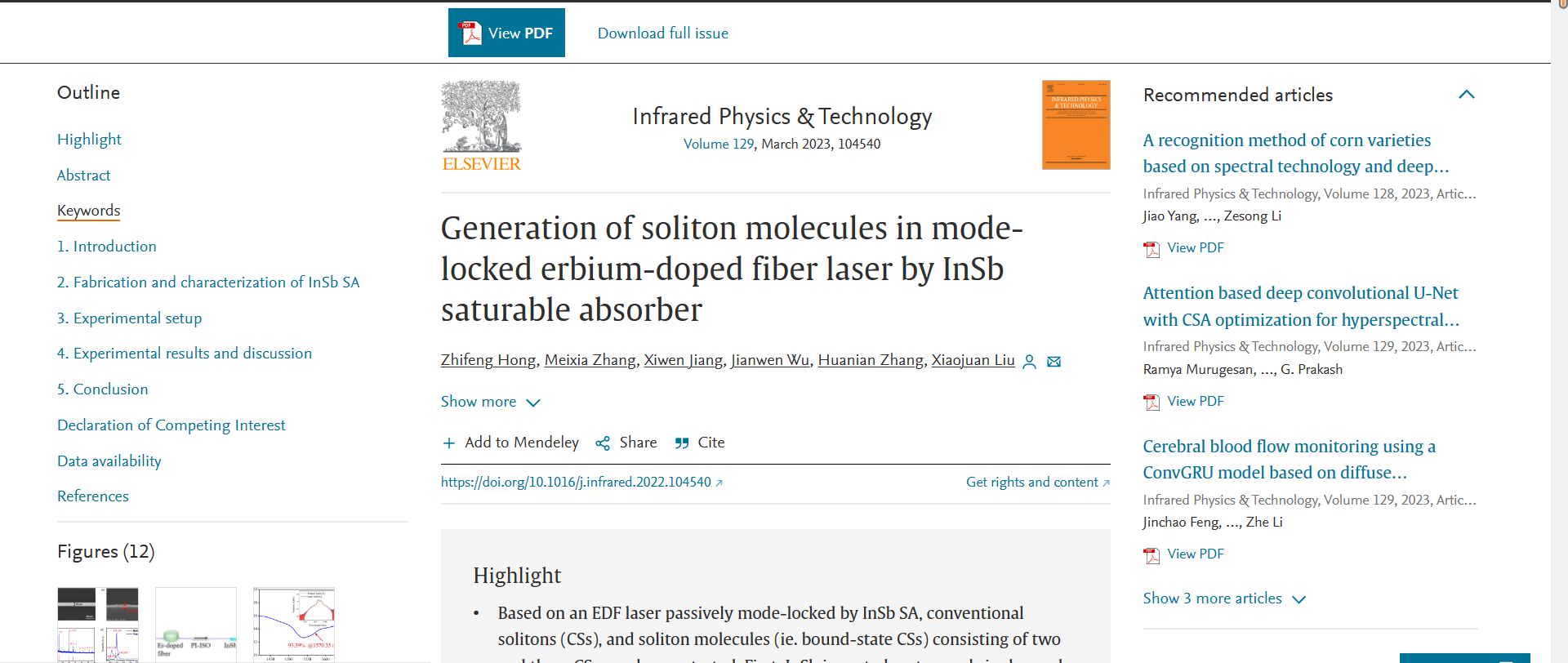 近日,《Infrared Physics & Technology》(物理类二区,IF: 2.997)在线报道了我院刘晓娟副教授、张华年副教授及合作者在光纤激光技术领域的重要进展。原文链接:https://doi.org/10.1016/j.infrared.2022.104540。