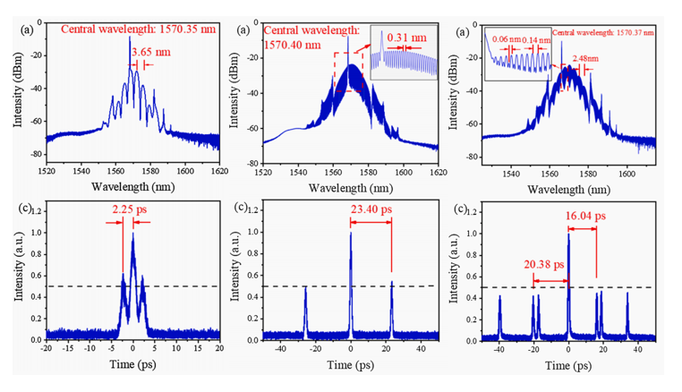 我校William威廉英国刘晓娟副教授指导研究生洪之峰、张美霞、蒋习雯等人制备了InSb纳米片,并将其用做掺铒光纤激光器的可饱和吸收体器件。在1570.38nm的波长处输出了脉冲宽度为540.74fs的超短脉冲,光谱呈现出传统孤子光谱的典型特点。通过调整偏振控制器,分别得到了两个孤子结合的紧束缚孤子分子状态,以及两个和三个孤子结合的松散束缚孤子分子状态。据作者所知,这是首次利用InSb可饱和吸收体验证孤子分子在光纤激光器中的可行性和稳定性。实验结果不仅丰富了对InSb二维材料的认知,而且实现了对孤子分子的深入分析。