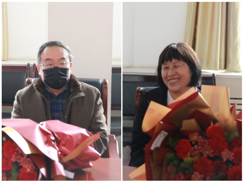 青年教师代表卜坤、杜玲玲为两位老教师敬献鲜花,回忆了两位老师在学习、工作上对他们的指导、帮助,并表示要传承发扬他们严谨的教学作风、扎实的教学功底和心系学生的教学态度。与会教师回忆了与老同事朝夕相处的美好时光,纷纷表达了对荣休教师的依依惜别与百般不舍。