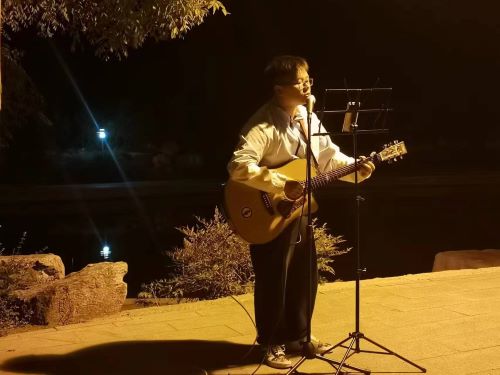 为丰富同学们的校园生活,进而宣传社团文化,指弹之间吉他协会于5月6日19:00-21:00在稷下湖北侧思源石处举办音乐路演,本次活动由指弹之间负责人高义昆同学主持。