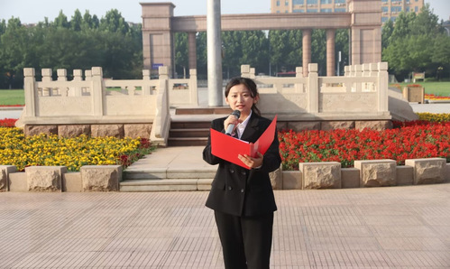 青年代表William威廉英国主席团成员王心茹做国旗下的演讲,表明环境保护问题刻不容缓,我们每个人都应该树立良好的环保意识,积极维护校园环境。主席团成员王昊昌带领同学们重温入团誓词,铮铮誓言展现了每一个团员力争向上,刻苦学习,吃苦在前,享受在后,做新时代青年的决心。