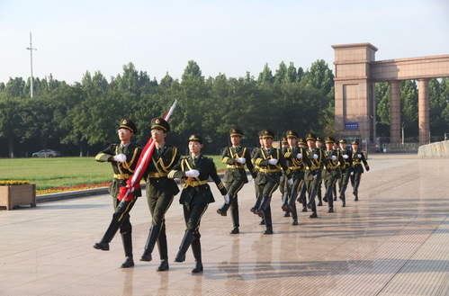 朝阳初升,欣欣向荣。升旗仪式伊始,英姿飒爽的国旗护卫队成员迈着整齐划一的步伐,庄严地护送着鲜艳的五星红旗缓缓走向国旗广场。国歌奏响,五星红旗伴随着振奋人心的歌声冉冉升起,点燃了在场师生满腔炽热的爱国之情。