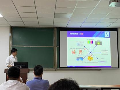 随后,硕士研究生朱明超、殷郭威、张奇三位优秀代表分别作了题为“亚波长尺度时空光场调控及其应用”、“BiOCl中带电缺陷对活性位点的影响”、“碳点负载的Fe-N-C/Fe3C双功能电催化剂的制备及性能研究”的学术报告。