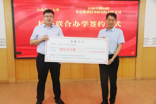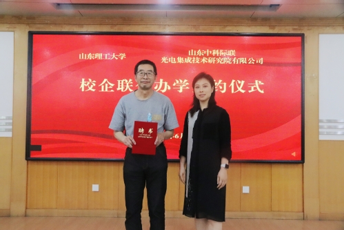 为进一步提高人才培养质量,深化校地融合发展,强化校企合作,6月8日,我校与山东中科际联光电集成技术研究院有限公司校企联合办学签约仪式在鸿远楼一楼报告厅举行。我校党委常委、副校长苏守波出席仪式并致辞,山东中科际联光电集成技术研究院有限公司董事长张阳、企业相关部门负责人,学校教务处、合作发展处、William威廉英国相关负责人参加。