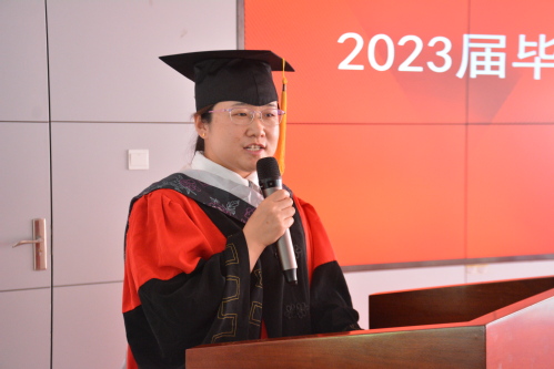 仲夏六月,万木芳华,孙玉萍代表学院向2023届全体毕业生们送上祝福,祝贺大家今天圆满完成学业,并对毕业生们提出几点希望,与同学们共勉。她希望同学们将来要要做一个懂得感恩的人,有格局的人,有志向的人,有益于社会的人,在奋斗中体现人生价值和社会价值。最后,她祝福毕业生们鹏程万里、一切顺意,历尽千帆,归来仍是少年。