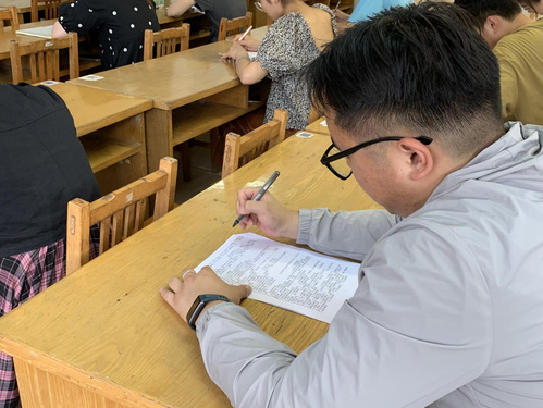 前两个环节结束后,全体学生党员就《主题教育应知必会知识测试》部分内容进行了笔试竞赛答题。试卷题目涵盖与主题教育内容相关的30道单选和20道多选题。大家全神贯注仔细阅读每一道题目,认真作答。赛后,进行了批阅并对竞赛成绩进行了公示。