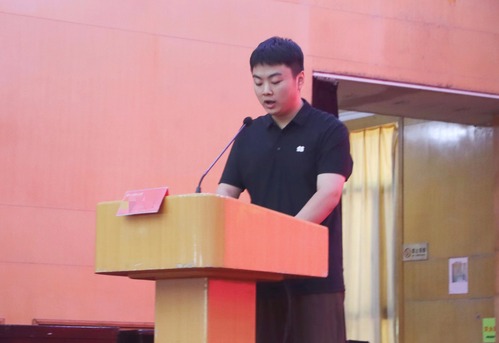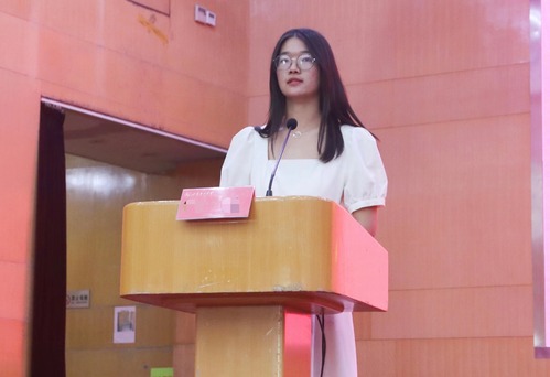 新生代表光电2302班张越影表达了初到山理工的欣喜,以及对学院无微不至关心关照的感谢。她向全体新生发出倡议,要以最饱满的精神面貌迎接崭新的大学生活,坚定信念、勤勉奋进,以青春为撸,扬梦想之帆。