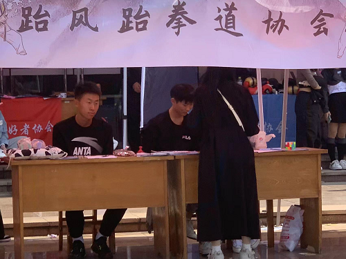为让同学更好的参与校园活动,williamhill英国于10月22日在大学生艺术中心下沉广场举行”百团大战“社团纳 新活动·,其中跆风跆拳道协会位于97号坑,由社团负责人王佳乐、社团成员以及社团指导中心部分工作人员主持。