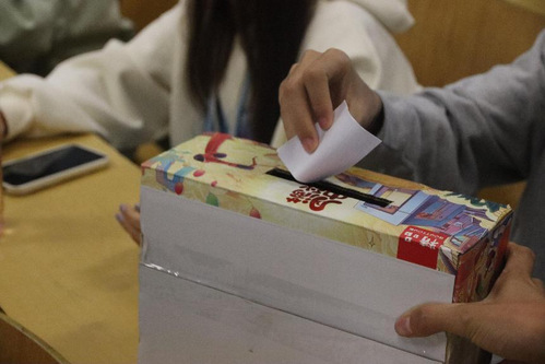 活动伊始,由王燕介绍活动流程与投票规则。首先由学院主席团成员王心茹同学介绍本次出席投票活动的代表。然后,请老师进行自我介绍,并请计票员检查票箱,监票员检查到场人数。