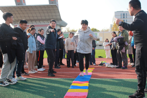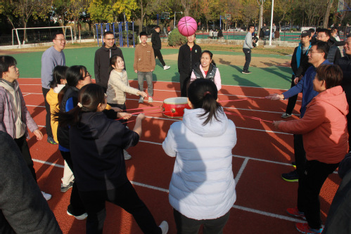 随后,参赛师生以班级或团队为单位分赴各个比赛地点开始精彩激烈的角逐。比赛设有趣味竞技赛:指压板障碍跑(翻扑克牌)、“不倒森林”、吸管接力赛、“蛟龙出海(8人9足)”、呼啦圈“过山车”、击鼓颠球(同心鼓)6项和拔河比赛。