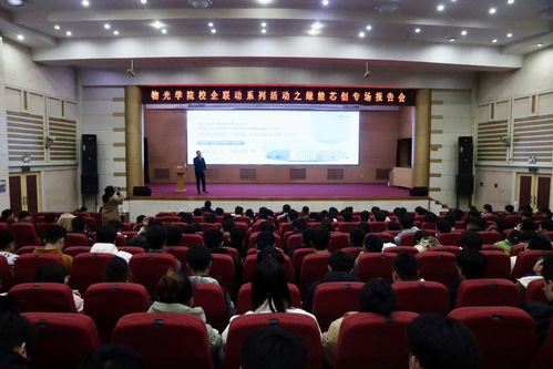 为进一步加强校企联动,营造学院优良学风氛围,帮助学生了解半导体芯片行业发展前景,11月16日晚,我院在西校区三号楼报告厅举办校企联动系列活动之绿能芯创专场报告会,淄博绿能芯创电子科技有限公司Fab厂长陶永钧主讲,学院各年级光电信息科学与工程、微电子科学与工程专业学生参加,报告会由学院党委副书记杨晨主持。