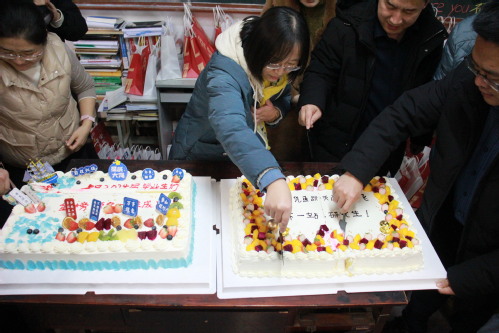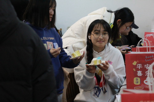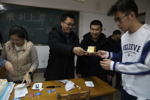 老师们分别给学子们分发蛋糕与大礼包,并为每位同学加油鼓劲。在最后,学院领导老师们送上最真挚的祝福,祝福大家心想事“橙”,“牛“”气冲天,一举“糕”中!同学们纷纷鼓掌回应,现场热烈且温馨。
