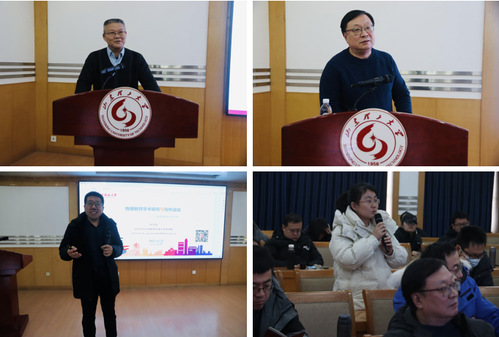 揭牌仪式后,蒋最敏围绕课程思政与课程质量、课程自身建设、课程思政在课程教学中的实践,作了《力学课程建设和课程思政》专题报告。李健围绕教学创新,作了题为《教学-改革-创新-发展 从教创赛看教学创新》的专题报告。高守宝围绕物理教育研究方向及未来发展,作了题为《物理教育学术研究与写作漫谈》的专题报告。会上,学院教师与三位专家进行了充分交流研讨。