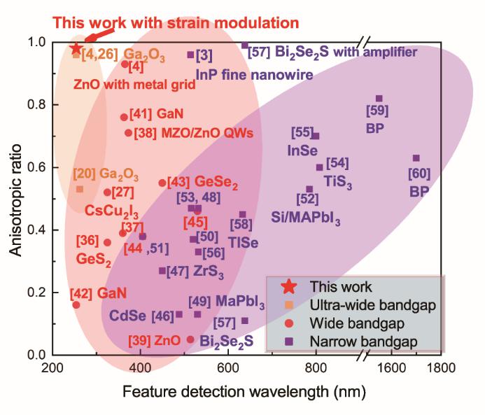 本工作为以β-Ga2O3为代表的各向异性半导体材料提供了一种应力耦合调控偏振光响应的新策略,为低对称性半导体用于偏振光探测应用奠定了坚实的基础,预期可以有效地推动β-Ga2O3在日盲紫外偏振光探测、应力传感、偏振成像等方面的应用。本工作在偏振光电测试和成像方面获得了松山湖材料实验室梅增霞研究员和梁会力副研究员的合作支持,在偏振拉曼光谱分析和理论计算方面获得了孙玉萍教授的合作支持,在材料制备和器件加工方面获得了邢飞副教授,高其乾博士和冯宇博士的支持。本工作得到国家自然科学基金,山东省自然科学基金,山东省青创团队和广东省基础和应用基础研究基金等项目的资助。