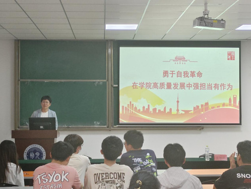 开班仪式后,许敬以“勇于自我革命,在学院高质量发展中强担当有作为”为题做了首场培训。许老师从“窑洞对”和“历史周期律”讲起,围绕“两个答案”展开,重点讲解深入推进新时代党的建设新的伟大工程。她从具体的事例讲起,强调学生干部要做到“四硬”即道德素质硬、工作素质硬、学习素质硬、身体素质硬。在平时的学习工作和生活中要坚定理想信念,勇于担当,敢于作为,不断提高自身素质,科学高效地开展工作,为学院高质量发展贡献力量。