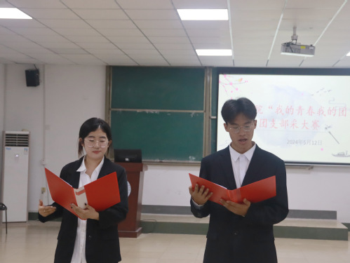 为加强学院各团支部组织建设,增强团支部凝聚力,5月21日晚,我院于15教335教室举办“我的青春我的团”团支部风采大赛。学院团委张媛老师、张继武老师和学生会学生代表担任评委,2023级6个团支部参加比赛,大赛由崔乐轩、高政敏主持。