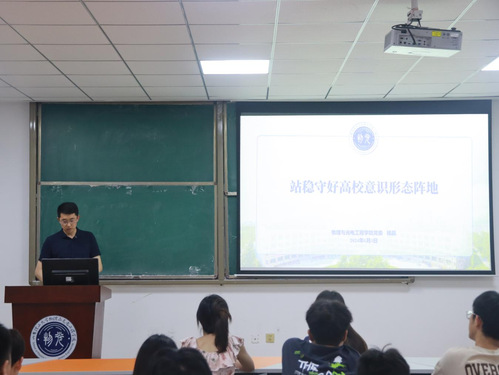 杨晨以《站稳守好高校意识形态阵地》为题,围绕习近平总书记关于意识形态工作的重要论述,从什么是意识形态、意识形态工作为什么极端重要、学生干部应该怎么做三个方面展开讲解。他希望,全体学团骨干要提高思想认识,时刻绷紧旗帜鲜明讲政治这根弦,担负起安全信息员的重要职责;要增强辨识能力,坚决抵制不良风气与诱惑,防范各类意识形态领域的风险与挑战;要发挥带动作用,带头深入学习贯彻习近平新时代中国特色社会主义思想,切实增强“四个意识”,坚定“四个自信”,做到“两个维护”;要加强理论武装,自觉用习近平新时代中国特色社会主义思想武装头脑、指导实践、推动工作,共同营造风清气正的学生网络空间。