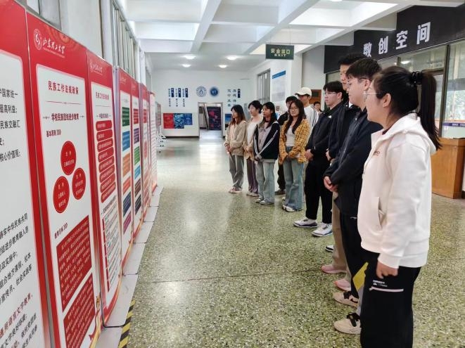 参观过程中,学生党员们仔细观看,互动交流。深入了解了新时代我们国家的相关民族政策和学校为民族团结事业所做的大量工作和取得的成绩。