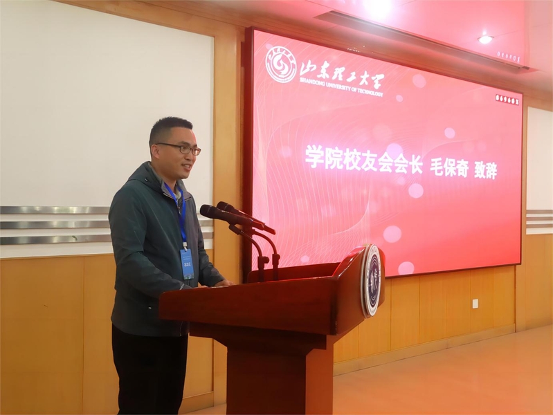 学院校友会会长,苏州德锐特成像技术有限公司技术应用总监毛保奇在致辞中回顾了在校学习生活的美好时光,分享了毕业后的成长与感悟,他向始终关心和支持学院发展的各位校友表达诚挚的谢意。他表示,校友会的成立,是一个新的起点,更是一份沉甸甸的责任和使命。让我们携手共进,秉承“厚德、博学、笃行、至善”的校训和“格物致知,晖光日新”的院训,以学院校友会为圆点,继续书写我们与母校的深厚情谊,共同描绘物光学院事业高质量发展的美好蓝图!
