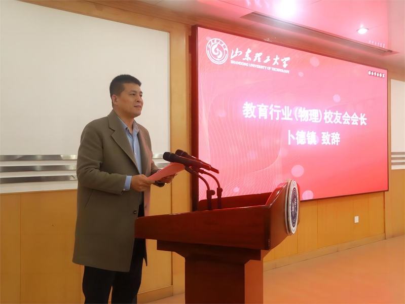 学院教育行业(物理)校友会会长、山东立而达教育咨询有限公司、山东迪睿食品有限公司董事长卜德镇在致辞中带大家一同回顾了学院物理教育办学发展历程和取得的成绩,分享了当前物理教育发展的新趋势。他表示,愿以校友会的成立为契机,同大家携手共进,共同努力,用智慧和汗水,为培养更多优秀的物理人才而拼搏,在物理教育的道路上,绽放出更加绚烂的光彩,祝愿母校事业蒸蒸日上!