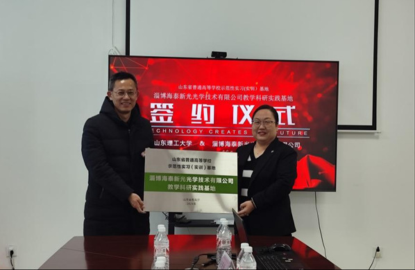 12月26日上午,学校教务处副处长牛学东,学院院长孙玉萍、党委副书记杨晨、副院长尹广超、光电系主任修俊山、副主任赵岳一行赴淄博海泰新光光学技术有限公司开展走访交流,并举行了省级高等学校示范性实习(实训)基地授牌仪式,企业主管王珊珊经理、综合部许艳芬经理等企业代表出席了本次活动。