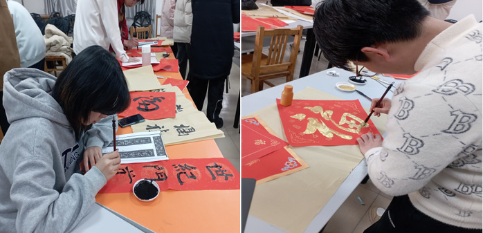 参赛选手们八仙过海,各显神通,凭借对不同书法字体的理解与喜爱,挥毫泼墨,创作出一幅幅精彩绝伦的书法作品。同时,参赛选手结合新春佳节主题,书写了大量“福”字和对联。评委老师和师范生投票支持心仪的作品后,还可以将这些“福”字和对联带回家,为即将到来的新年增添浓浓的喜庆氛围。整个活动现场弥漫着欢声笑语,洋溢着热烈的节日气息。