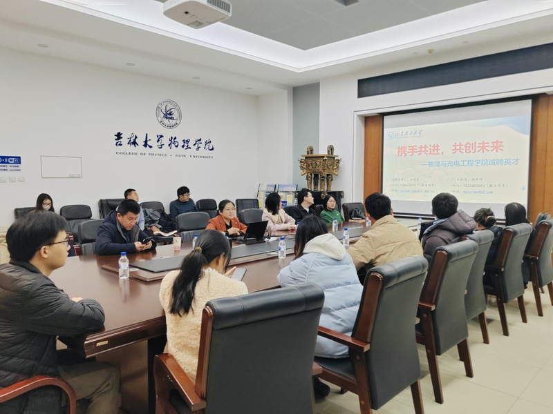 在吉林大学物理学院,孙玉萍一行与博士毕业生们进行了座谈交流,她表示,山理工物光学院与吉林大学物理学院有着深厚的合作基础,近年来学院有多名本科生考入吉林大学继续攻读研究生,吉林大学也有多名优秀博士毕业生入职学院工作,此次到访旨在进一步加强交流合作,共谋发展。她详细介绍了学校的人才招引政策,并就教学科研环境、淄博市基本情况等进行了深入交流。座谈会后,孙玉萍一行到吉林大学高压与超硬材料全国重点实验室进行了参观调研。