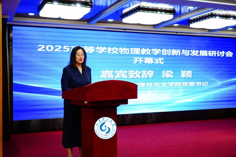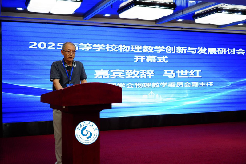 教育部高等学校大学物理课程教学指导委员会师范类专业工作委员会主任宋峰教授、中国物理学会物理教学委员会副主任马世红教授、北京师范大学物理与天文学院党委书记梁颖教授先后致辞。他们表示,物理教育是科技强国的基石,物理教育现在正面临前所未有的机遇与挑战:AI技术重塑教育形态,拔尖创新人才需求迫切,课程思政与学科融合亟需深化。希望本次会议凝聚共识、深化合作,碰撞出更多智慧火花,为破解教学难点、创新育人模式提供新思路。