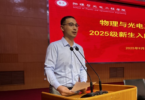 教师代表光电系主任修俊山老师发言。他向同学们提出三点希望,希望大家带着“探索欲”去学习,带着“坚韧心”去面对挑战,带着“责任感”去规划未来。