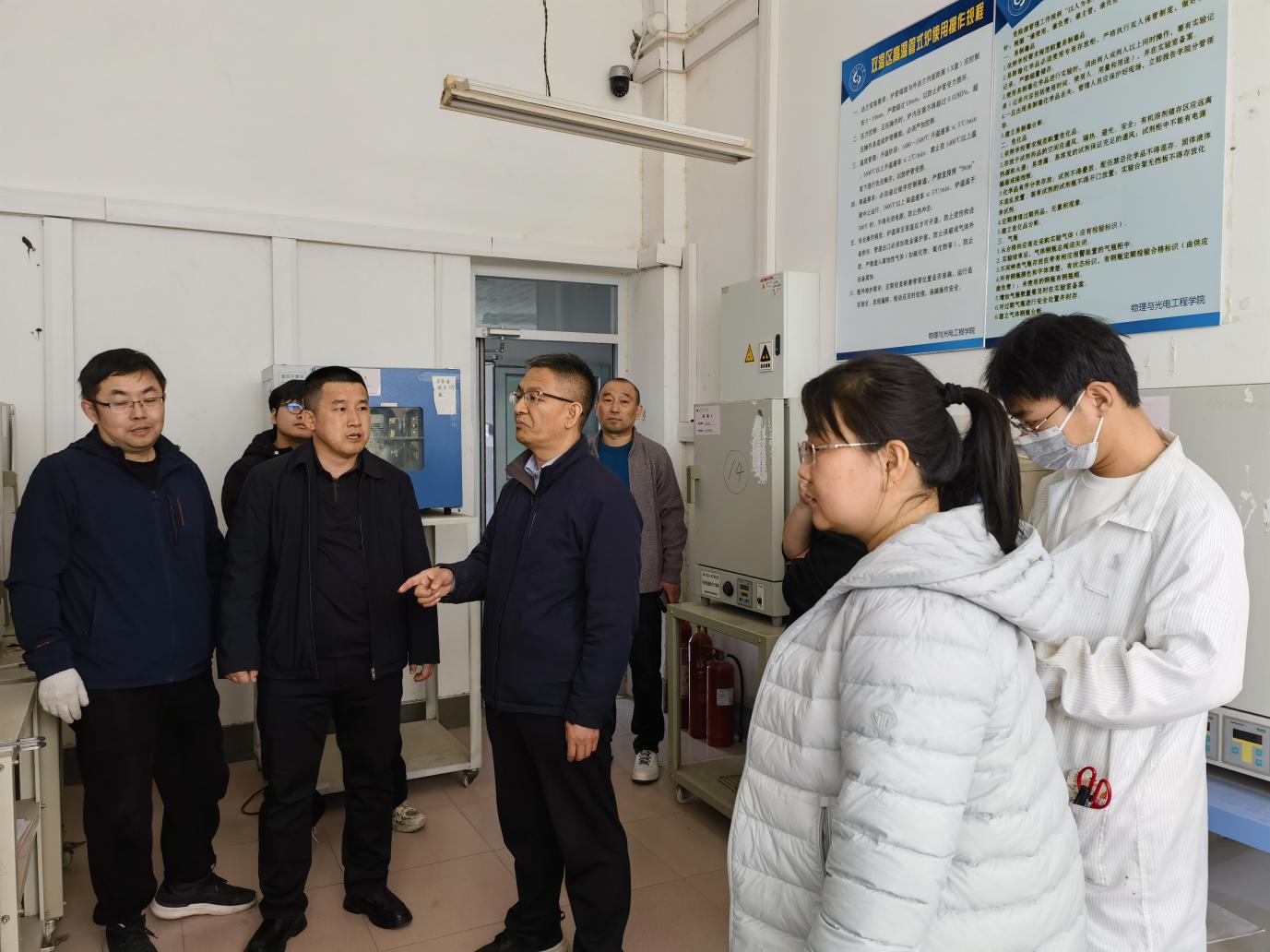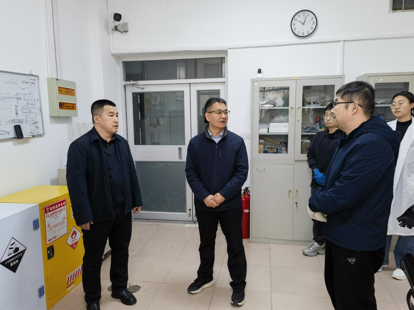 检查组重点对危险化学品管理、高压气瓶固定、电气安全、消防设施状态、应急通道畅通性等关键方面,开展了实地检查。学院领导与实验室负责人、实验人员深入交流,详细了解日常安全管理及隐患整改情况,针对发现问题,现场明确整改责任、措施及时限,要求立行立改、闭环管理。